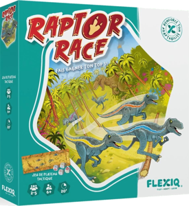 Amusant, passionnant et en constante évolution. Raptor Race est le premier jeu de société FlexiQ pour toute la famille ! Marquerez-vous le plus de points avec vos 3 meilleurs raptors, même dans le mauvais ordre, après que le premier raptor a franchi la ligne d'arrivée ?