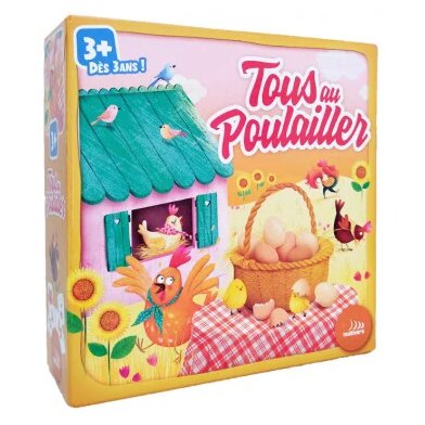 Tous au Poulailler est un premier jeu de cartes pour les enfants dès 3 ans avec des règles évolutives pour les plus grands. Il s'agit de trouver un panier, puis de trouver les oeufs frais, en prenant bien soin d'éviter les oeufs cassés et surtout en évitant les poules qui défendent le poulailler.